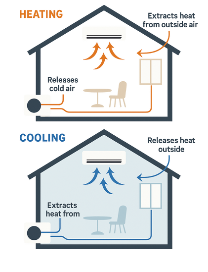 Extracts heat from inside your home and releases it outdoors, keeping your space cool in summer.